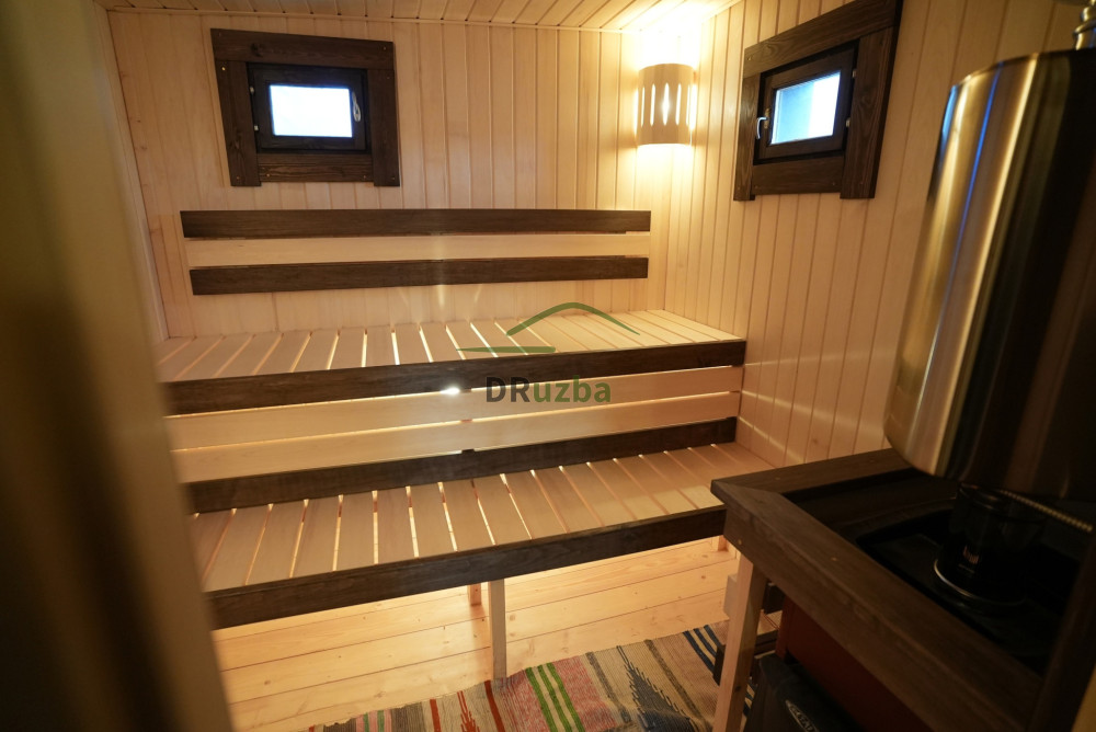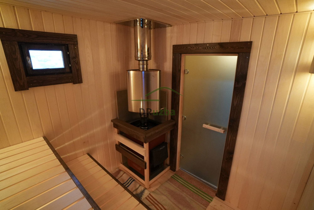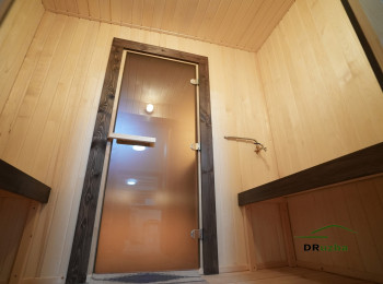 - Окна: в парной деревянный стеклопакет, комната отдыха двойной стеклопакет