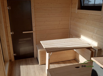 - Просторная парная с мягким светом и натуральными отделочными материалами.