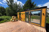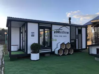 Модульная баня по каркасной технологии в стиле Сканди. Баня полностью укомплектована и оснащена всем необходимым.