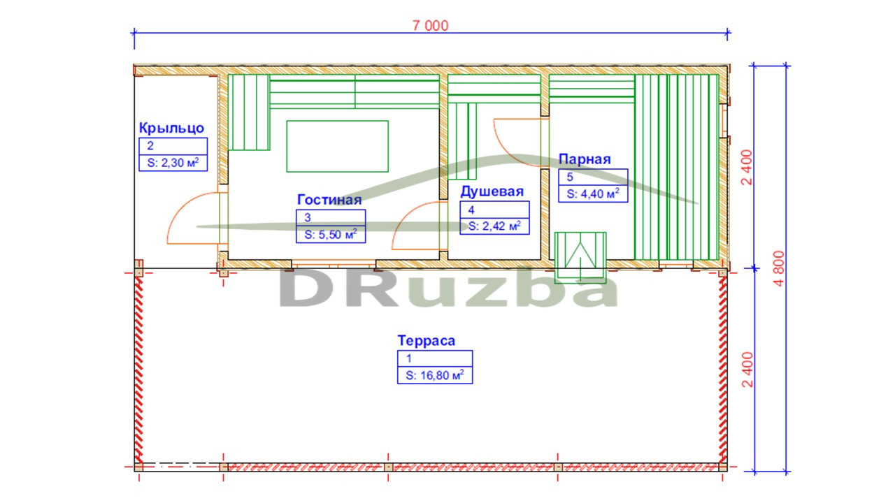 | Помывочное отделение - скамейка- 1 шт | ||||||