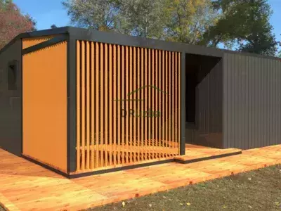 Модульный дом с большой террасой по каркасной технологии в стиле Барн